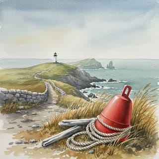 . Traditional watercolor on cold-press paper: wet-on-wet sky and distant forms for soft diffusion; layered glazing in the midground; wet-on-dry and subtle dry-brush for crisp foreground accents, light granulation. Compose with a clear depth path and rule-of-thirds focal point: foreground anchor shapes, simplified midground, softened background planes. Lighting: Lighting Mood, single gentle key light shaping forms. Color: Color Scheme, harmonious limited palette; reduced saturation, lower contrast, and cooler, lighter values in distant layers; richer, warmer, higher-contrast foreground. Include misty bloom and delicate edge feathering. Emphasize layered distance with softened backgrounds. Perspective at eye level or slight elevated vista to reveal receding planes. Soft, textured rendering overall; sharpest detail only in the focal foreground.