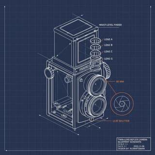 Precise blueprint-style line drawing of
