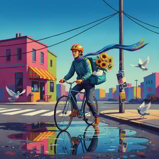. Color palette: Color Scheme, emphasizing bold warm-cool contrasts and high saturation. Background reduced to expressive fields; confident contour outlines; selective detail only at the focal area. Finish: painterly, matte surface with subtle canvas grain, slight edge variation, and a lively rhythm of marks; crisp overall readability.