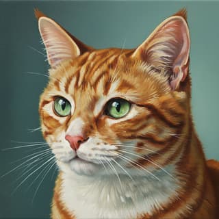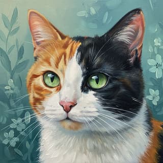 Soft, diffused key at 45° with subtle rim light; natural catchlights. Harmonize colors to the coat with a complementary background; moderate saturation and balanced contrast. Finish with crisp whiskers and nose, layered fur, and believable surface texture.