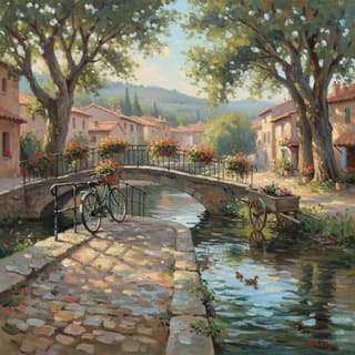 . Lively, visible brushstrokes with broken color; soft edges and scumbled transitions shape forms rather than hard outlines. Mid-distance framing, natural eye level, subject placed on the rule of thirds with airy negative space and gentle background falloff via atmospheric perspective. Leave generous breathing room; orientation adapts to subject (portrait or landscape). Outdoor light at Time Of Day, side-lit, producing dappled highlights and soft, cool shadows; luminous air with a slight haze. Color design follows Palette, with warm-cool shifts (warmer sunlit planes, cooler shaded planes) and small vibrating complements for sparkle. Painterly surface with occasional impasto highlights, subtle canvas grain, and a delicate bloom. Balanced contrast, cohesive composition, serene yet lively mood.
