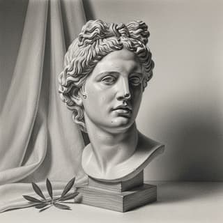 , emphasizing smooth tonal gradients and refined shading for convincing volume. Drawn on smooth bristol, full-value range from paper whites to deep graphite blacks with subtle paper tooth. Composition: Viewpoint; subject placed on the rule of thirds with a clear focal point and gentle vignette, balanced negative space and framing suitable for portrait or square formats. Lighting: Lighting, with a defined light-to-shadow terminator, soft penumbra, realistic cast shadows, core and reflected light. Technique: layered HB-8B graphite, continuous‑tone blending, cross‑contour accents, selective kneaded‑eraser lifts for crisp highlights; firm edges at the focal area, softer falloff elsewhere. Atmosphere: quiet, uncluttered background to separate the silhouette. Palette: neutral grayscale, balanced contrast. Output: highly detailed, sharp yet natural texture, polished finish.