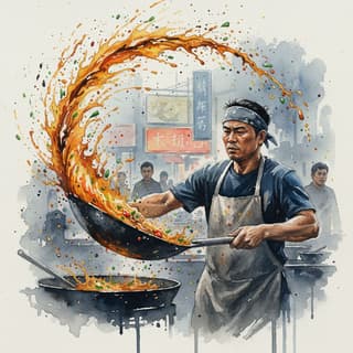 Subject, captured mid-action with a sense of motion. Apply expressive splash-and-spatter technique: dynamic fluid splashes, controlled speckles, and kinetic textures that arc around and across the subject, with denser speckling near impact zones and lighter mist outward. Visual style: Art Style with visible brush/grain; edges alternate between crisp droplets and soft bleed. Three-quarter view, dynamic diagonal composition using rule of thirds; subject as focal point with leading splatter trails. Lighting: single directional key with soft fill and subtle rim to catch droplets; faint atmospheric mist to amplify motion. Color: Color Palette with high-contrast accents inside splashes. Finish: finely detailed, tactile surface, subtle motion blur on stray droplets, sharp focus on eyes/core form, softly defocused background.