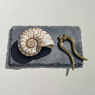 on dry 300 gsm cold-pressed paper. Clean, hard-edged shapes; precise contours; layered glazing for depth; pigment contained within defined forms. Composition: Composition, clear focal point, calm negative space. Directional natural side light creates crisp highlights and firm shadows, emphasizing form. Limited palette: Palette, moderated saturation, clear warm-cool separation. Paper texture subtly visible; reserved white of paper for highlights; smooth, stepwise value transitions. Sharp rendering, fine brush control, uniform washes, dry-edge accents, modern watercolor clarity.